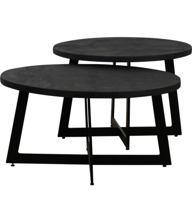 De Amir salontafel set brengt stoere elegantie in je woonkamer. Deze 2-delige set bestaat uit ronde tafels met een blad van zwart gezandstraald mangohout en een strak metalen onderstel. De matte afwerking en de zichtbare houtstructuur geven de Amir salontafel een krachtig en eigentijds karakter.