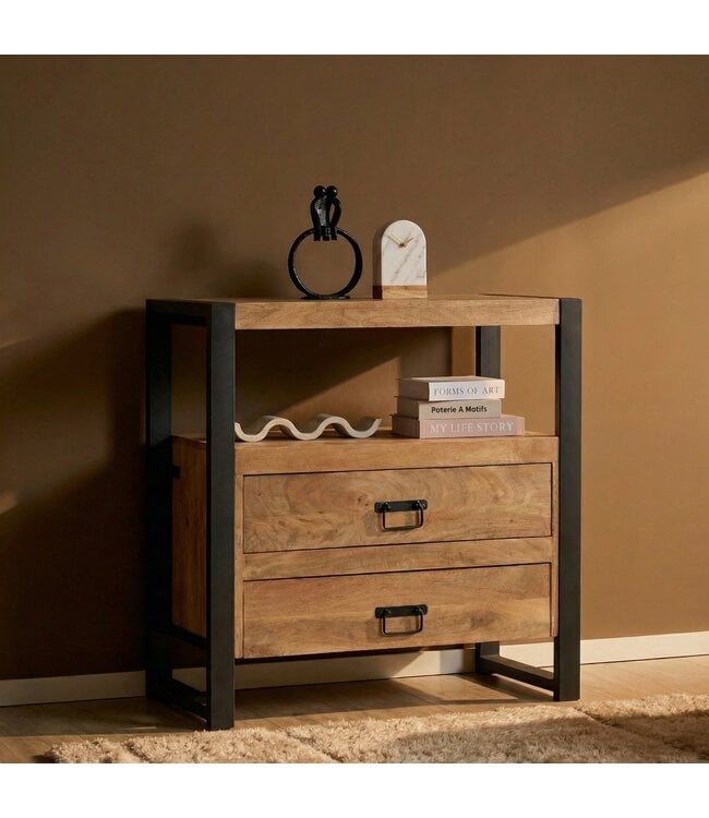 De Britt ladekast 80 cm van Starfurn is een functioneel en sfeervol meubel dat perfect past in een modern, landelijk of industrieel interieur. De kast is gemaakt van massief mangohout en afgewerkt in een warme naturel tint, wat zorgt voor een natuurlijke en tijdloze uitstraling.