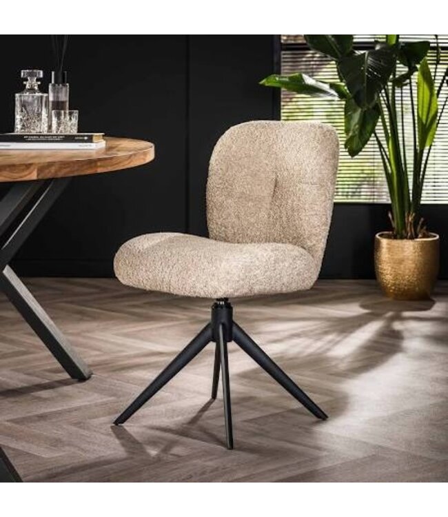 Op zoek naar een stijlvolle en comfortabele draaistoel? De Stoel Comfort Draaibaar in Bouclé Sand Zijl voegt warmte en luxe toe aan elke ruimte!