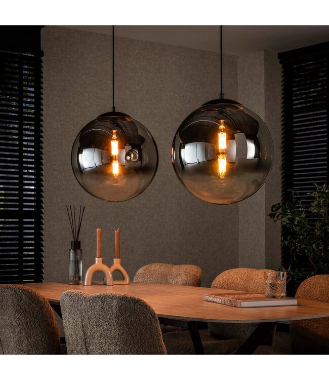 De "Hanglamp Bubble Shaded" is een stijlvolle en moderne lamp die zowel functionaliteit als esthetiek biedt. Deze lamp heeft een lengte van 110 cm, een breedte van 40 cm en is in hoogte verstelbaar tot 150 cm. De zeven glazen kappen, uitgevoerd in rookglas met een verloop van smoke naar helder, zorgen voor een mooi gedoseerd licht dat een warme sfeer creëert in de ruimte.