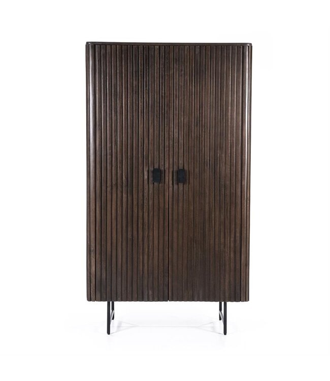 De Eleonora Opbergkast Remi in bruin is een stijlvolle toevoeging aan uw interieur. Gemaakt van duurzaam mangohout, heeft deze kast een strak design met unieke groeven in de deuren, wat zorgt voor een industriële uitstraling. De kast beschikt over twee deuren die toegang geven tot vier ruime opbergvakken, ideaal voor het opbergen van diverse items. Met afmetingen van 96 cm breed, 45 cm diep en 170 cm hoog past deze kast perfect in verschillende ruimtes. Het zwarte metalen onderstel biedt stabiliteit en draagt bij aan de moderne look. De Remi-collectie van Eleonora omvat meerdere meubels, waardoor u een harmonieus geheel kunt creëren in uw interieur.