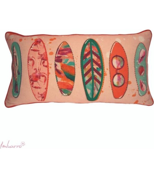De unieke dessins van surfborden in aquareltinten geven een zomers gevoel en brengen de strandvibes direct naar uw woonruimte. Dankzij het moderne ontwerp past dit kussen perfect in zowel binnen- als buitenomgevingen, waardoor u eindeloos kunt variëren met uw decoratie.
