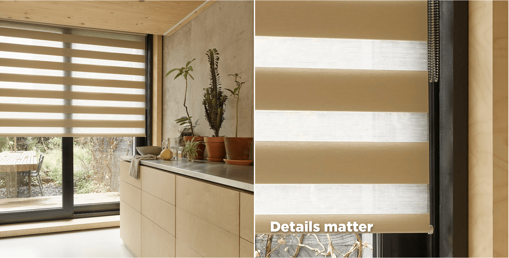 Duo rolgordijnen van Rispens Wonen bieden een innovatieve manier om licht en privacy te reguleren. Deze rolgordijnen bestaan uit twee lagen stof met transparante en niet-transparante banen. Door de lagen te verschuiven, kun je eenvoudig de hoeveelheid lichtinval en privacy aanpassen. Duo rolgordijnen zijn een moderne en veelzijdige oplossing voor elk interieur.