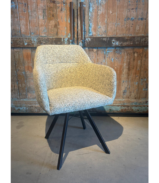 Stoel Niels is een moderne en comfortabele eetkamerstoel met armleuningen. Het zwarte metalen frame geeft de stoel een stoere, eigentijdse uitstraling die perfect past in elk interieur. De zitting biedt een prettige zit dankzij de zachte stoffering en de fijne ondersteuning van de armleuningen.