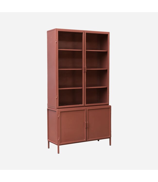 Breng karakter en kleur in huis met de Garland vitrinekast in terra van New Routz. Deze stoere, metalen kast met vier deuren combineert functionaliteit met een warme, vintage uitstraling. De terra kleur zorgt voor een gedurfde, maar sfeervolle touch in elk interieur, terwijl het heldere glas een mooi podium biedt voor je favoriete servies, boeken of decoratie.