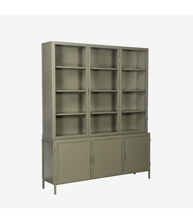 De Garland vitrinekast 6-deurs in olijfgroen van New Routz is een krachtig meubel met een verrassend zachte uitstraling. De combinatie van het industriële ontwerp en de natuurlijke groene kleur maakt deze kast tot een echte sfeermaker in huis. Perfect voor interieurs waarin robuustheid en rust hand in hand gaan.