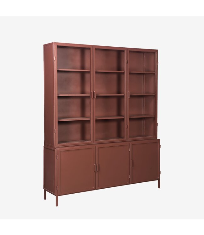 De Garland vitrinekast 6-deurs in Terra van New Routz is een stijlvol statement voor elk interieur waarin karakter en functionaliteit samenkomen. Deze ambachtelijk gemaakte metalen kast is royaal van formaat en uitgevoerd in een warme, aardse terratint die direct sfeer toevoegt aan je ruimte.