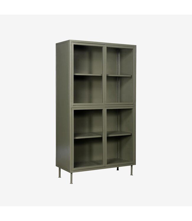 De Vitrinekast Sutton Olijfgroen combineert een krachtig industrieel design met een warme, natuurlijke uitstraling. De diepe olijfgroene kleur voegt karakter toe aan je interieur en creëert een rustgevende sfeer, terwijl het robuuste metalen frame en de glazen deuren zorgen voor een stoere en open uitstraling. Een echte eyecatcher die functionaliteit en stijl moeiteloos samenbrengt!